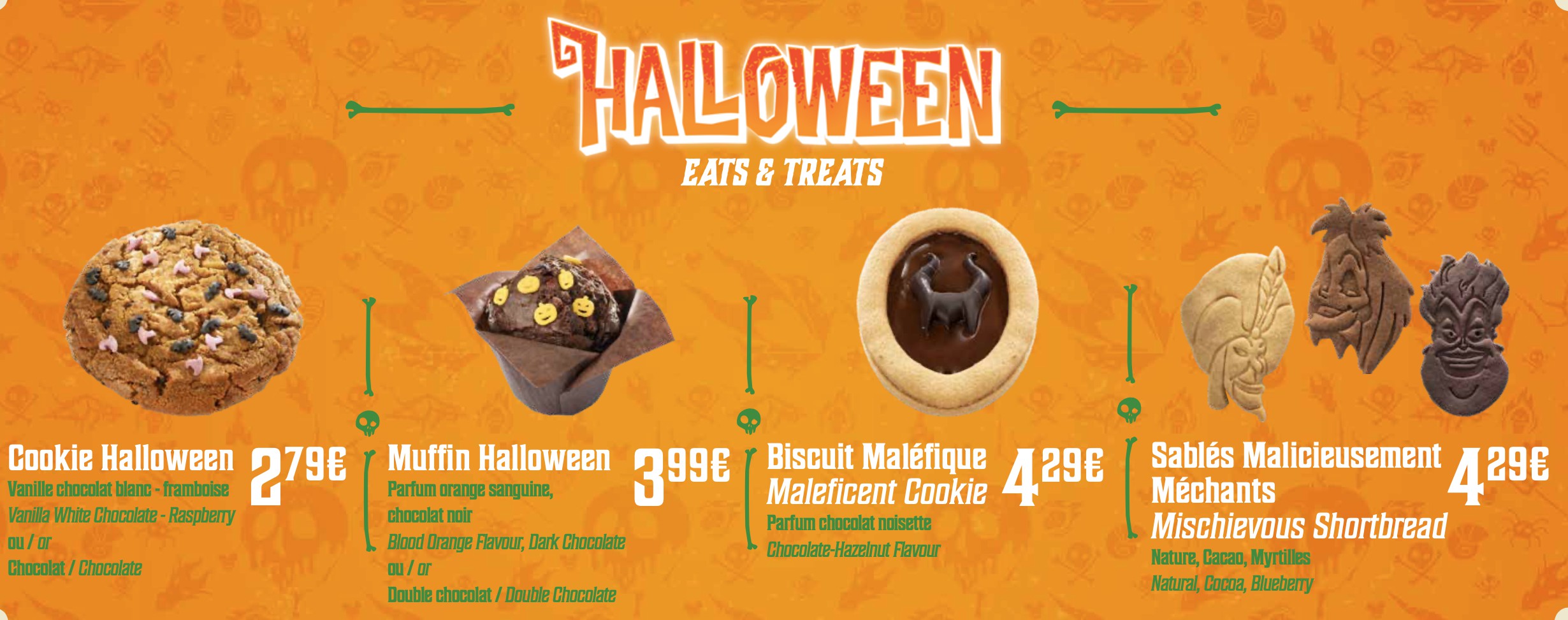 Cette annĂ©e, les visiteurs pourront retrouver les traditionnels cookies, muffins, crocs, beignets, sablĂ©s et soupes dâHalloween sur Main Street USA et Ă Â Frontierland.