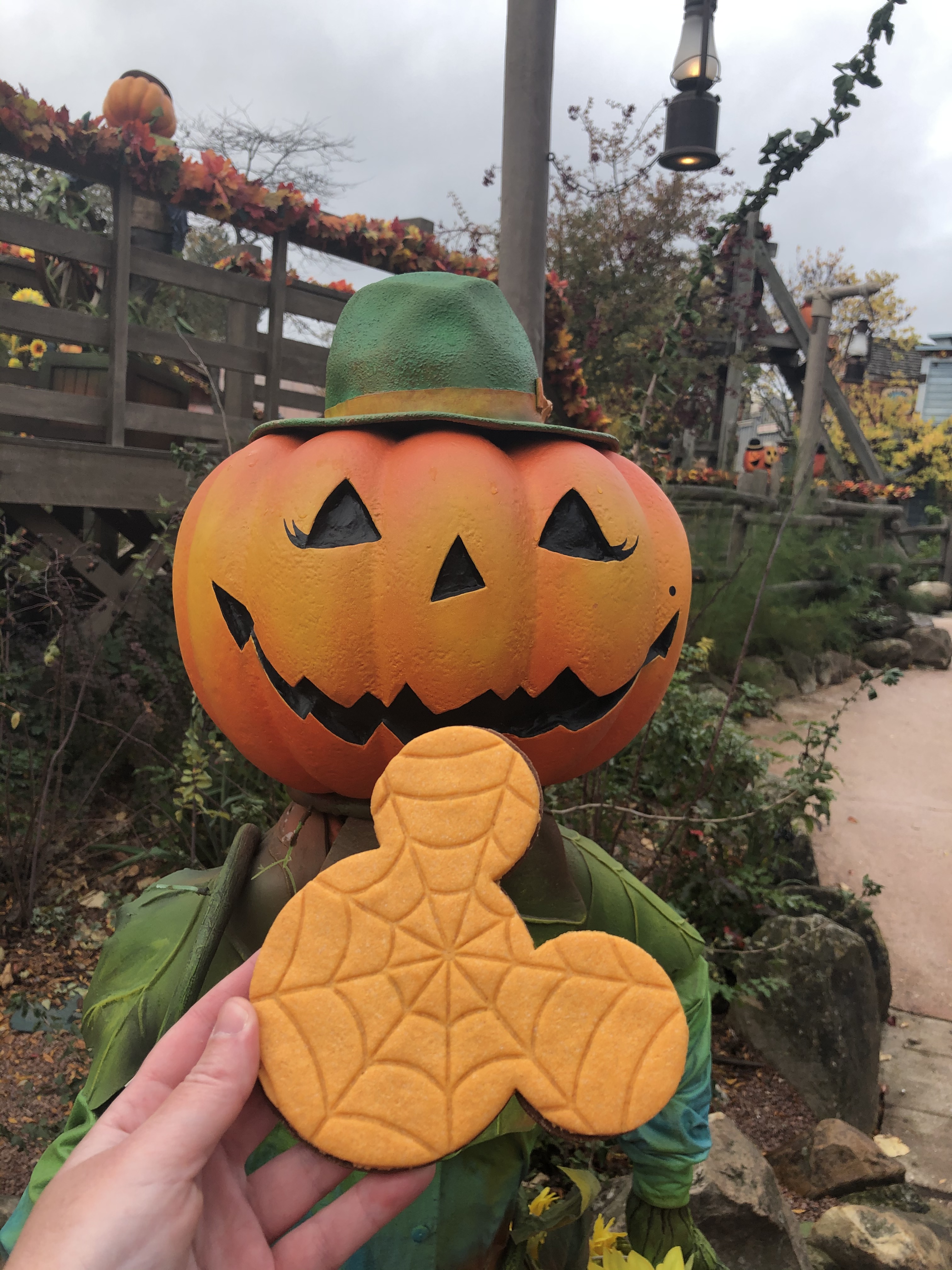 Quand vous continuez votre visite, Stitch fidĂšle a lui mĂȘme se prĂȘte aux photos Ă©galement en costume dâHalloween, alors quâun duo dâhomme / femme citrouille saluent les visiteurs de Frontierland depuis Legends of the Wild West !
