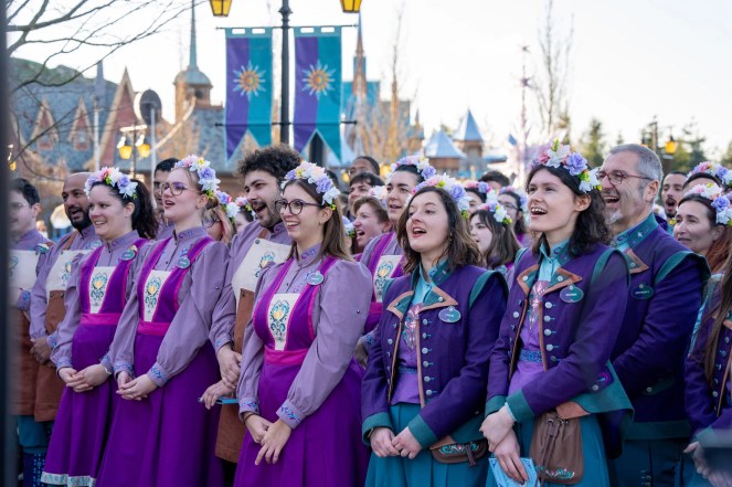 Un moment musical inoubliable est venu sublimer la cĂ©rĂ©monie : rĂ©unis devant la Fontaine, les villageois ont entonnĂ© dâune seule voix lâhymneâŻVueli. Les voix se sont Ă©levĂ©es avec force et Ă©motion, les refrains rĂ©sonnaient jusque dans les rues du royaume, scellant lâesprit de communautĂ© qui animeâŻArendelle.âŻ